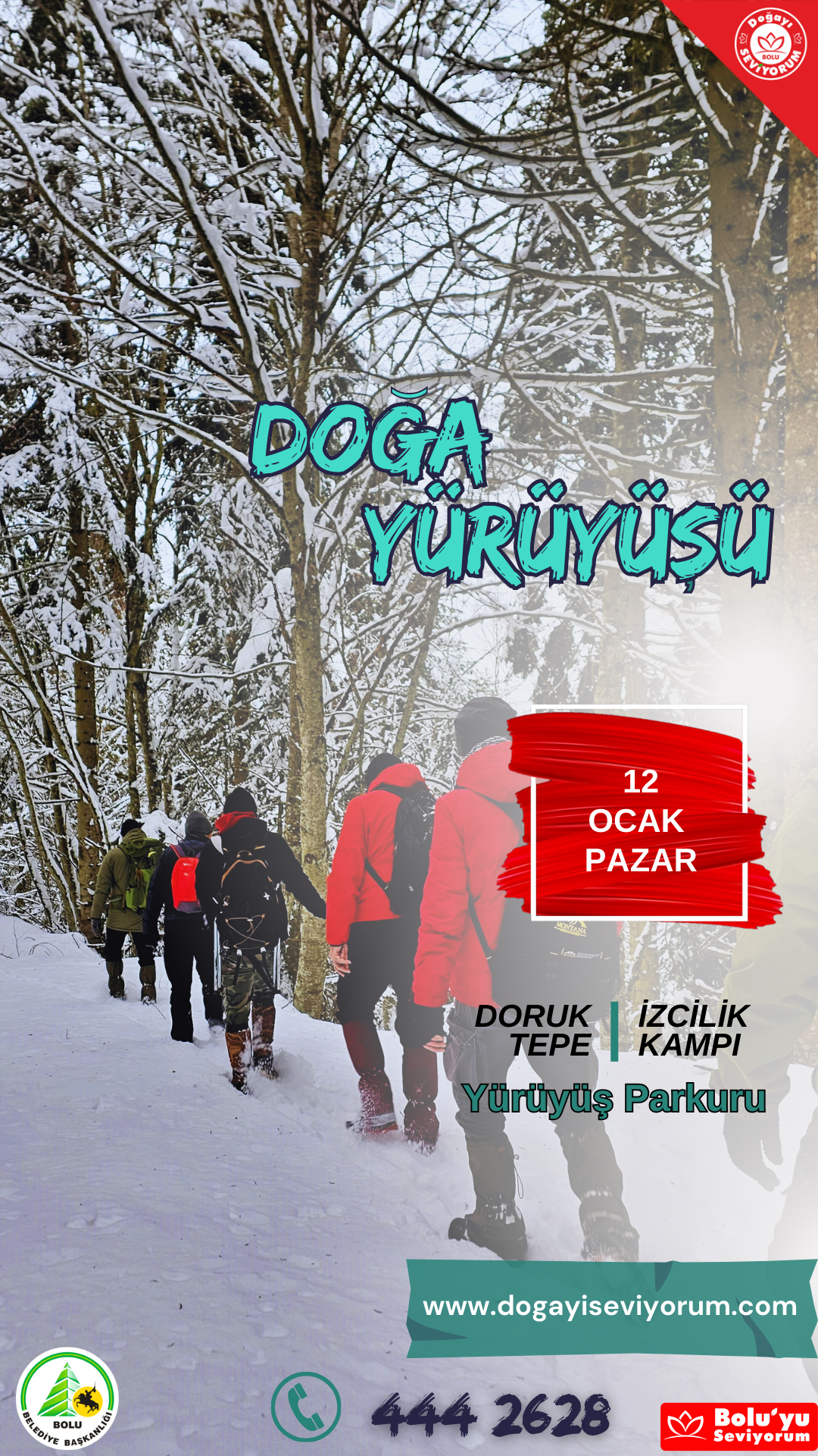 Buluşma yerimiz Aktaş Mahallesi Bolu Belediyesi Turizm ve Tanıtım Ofisi – Yeşil Konak (Grand Köroğlu Otel Yanı) önünden 12 Ocak Pazar günü saat: 09.00’da hareket edilerek; Bolu Belediyesi Kültür ve Sosyal İşler Müdürlüğü Turizm ve Tanıtım Biriminin düzenlemiş olduğu Etkinliğine katılım sağlayacağız.